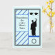 Carte de félicitations pour votre fils qui vient d'obtenir son Masters Degree. La conception a rayé bleu sur le côté gauche de la carte avec un libellé permanent. Le côté droit a un diplômé avec un casquette et une robe détenant un diplôme. La carte est bleue avec une couleur bleu clair et des silhouettes noires. La conception comporte également deux casquettes, et une couronne. Merci à hungryjpeg pour certains des éléments du design.