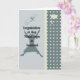Les couleurs de graduation pour le gouvernement ont été utilisées sur cette carte de maîtrise en gouvernement. Les couleurs sont turquoises et un accent vert jaune clair a été utilisé pour compléter la couleur. Il y a un casquette, un diplôme et un diplômé qui saute pour la joie dans le design. Il conviendra certainement à la personne qui a reçu cette carte de vous.