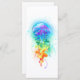 Grande méduse irisée, artistiquement dessinée, brillante, avec de longues tentacules sur le blanc, peinte sur l'arrière - plan multicolore. Méduse arc-en-ciel.