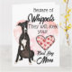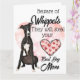 Pour toutes les mamans de Whippet, cette carte est dédiée à vous ! Idéal pour la fête des mères pour montrer l'amour de votre Whippet pour son humain. Parfait pour votre père, mère, papa, hommes, femmes, amis et membres de la famille. Options de personnalisation : Couleur de fond et tout le texte.