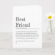 Célébrez votre humain préféré avec cette carte drôle et sincère de Meilleur Ami ! Avec une définition spirituelle et chaleureuse de ce qu'est vraiment un meilleur ami, cette carte est parfaite pour les anniversaires, les moments juste pour le plaisir, les longues distances, les lettres envoyées de la caserne, ou chaque fois que vous voulez montrer à votre meilleur ami à quel point il compte pour vous.