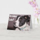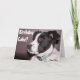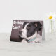 Cette couverture de carte de vœux présente une photo rapprochée adorable d'un Border Collie noir et blanc. Mélange de sauvetage de Heeler Personnalisez le sentiment sur la couverture et à l'intérieur selon vos besoins ou supprimez le texte pour laisser de la place à une note manuscrite. Envoyez cette carte mignonne pour faire savoir à quelqu'un que vous pensez à lui/elle. Photo © Patricia AZ Phillips.