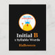 La carte flashcard "Blood" est une des 8 cartes flashcards en couleur et en image à thème Halloween, chacune pour un mot syllabe commençant par la lettre "B". Convient à la pratique de la lettre "B" dans la position initiale pour l'articulation et la production sonore, en particulier à l'appui du développement de la parole et de la langue