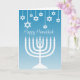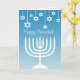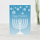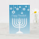 Carte Menorah bleu et blanc Joyeux Hanukkah