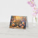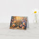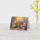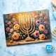 Cette oeuvre d'IA est une jolie carte qui présente une Menorah d'or avec des bougies éclairées entourées de fleurs à l'huile.