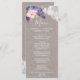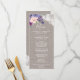 Cette carte de menu à la dentelle et aux fleurs violettes est parfaite pour un mariage campagnard. Le design rustique chic présente un bel agencement de fleurs violettes, lilas et roses vertes avec dentelle fleurie blanche sur un élégant arrière - plan en lin. Ce menu peut être utilisé pour une réception de mariage, un dîner de répétition ou tout événement.