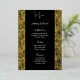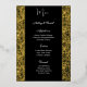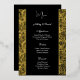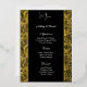 Real Gilded Gold Foil Cette carte de menu mariage est présentée dans un élégant imprimé floral noir et or, script et texte standard en couleur blanche. Personnalisez cet élément et changez le texte à votre place avec ce modèle. Image stock