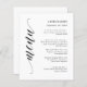 Améliorez l'élégance de votre réception de mariage avec des cartes de menu mariage de script fantaisie classiques pour les réglages d'assiette, parfait pour une variété d'événements haut de gamme. Ces cartes de menu sont idéales pour les mariages de cravates noires, les réceptions sophistiquées dans la salle de bal, les cérémonies traditionnelles intemporelles et les mariages de luxe. Dotés d'une typographie classique et d'un design élégant, ils présentent un décor raffiné, des tables chic et des couleurs classiques. Que ce soit pour un dîner intime ou une grande fête, ces cartes de menu offrent une façon élégante et polie de présenter votre menu tout en ajoutant une touche de beauté intemporelle à votre journée spéciale.