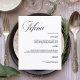 Un arrière - plan blanc. Personnalisez et ajoutez vos noms et le menu. Texte noir. 1 feuille = 1 menu imprimé bord à bord.