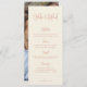Disponible imprimé ou numériquement. Script Boho Photo Crème Mariage Menu Card. Un design entièrement personnalisable dans les tons boho inspirés du texte en terre cuite sur un arrière - plan crème. Facile à personnaliser avec vos détails et remplacer l'échantillon photo au dos par votre propre photo ou supprimer l'échantillon photo si aucune photo n'est nécessaire.