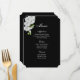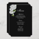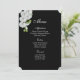 Carte menu affichée sur le papier de base en noir avec une belle impression d'orchidées blanches. Script et texte standard en blanc. Customisez les éléments du menu en cliquant sur le bouton personnaliser, cherchez à droite et trouvez les cases appropriées pour modifier vos informations. Je vous souhaite de bons voeux pour votre jour de mariage.