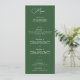 Carte de menu vert foncé pour accompagner la suite d'invitation Wrightsville Manor au charme du sud, inspirée de la nature.