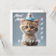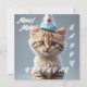 Voici notre carte de vœux "Meow! Meow! Joyeux Anniversaire" - une façon délicieusement parfaite d'envoyer des vœux d'anniversaire à tout félinophile ! Ce design charmant présente un chat rayé noir, brun et blanc fantaisiste, portant fièrement un chapeau d'anniversaire, prêt à faire sourire votre proche.