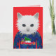 CHRISTMAS SWEATER CAT GREETING CARDS. INSIDE READS: MEOWY CHRISTMAS