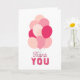Carte de voeux Merci avec ballons dans différentes nuances de rose. Pour ajouter du texte, cliquez sur le bouton "Personnaliser". *Veuillez noter que le filigrane Zazzle qui apparaît dans l'aperçu du zoom n'apparaîtra PAS sur le produit imprimé final. © Bois de rose et agrumes