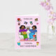 Illustration de deux femmes afro-américaines souriantes qui s'asseyent ensemble sur un canapé en train de boire des verres de vin. L'image est collée contre un arrière - plan rose pâle et accompagnée des mots "Merci d'être un si bon ami".
