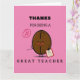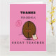 Conception d'une fève à café personnalisée représentant une enseignante qui a été choisie comme enseignante exceptionnelle par un(e) élève(e) pour ses qualités d'enseignante. Cette carte est appropriée pour tout enseignant, mais surtout pour celui qui aime le café.