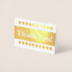 Cette conception élégante de carte de remerciement avec feuille d'or plain doré comporte le message « Merci ! » sur le devant, ainsi qu'un message personnalisé à l'intérieur. Elle comporte également des formes ovales décoratives. Elle pourrait être utilisée pour exprimer des remerciements à quelqu'un qui a assisté à un mariage, à des funérailles ou à un autre événement.
