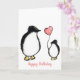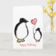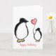 Mignonne carte de maman personnalisée à 60ème anniversaire montrant un manchot et un enfant avec un ballon de coeur rose. Une carte moderne et agréable pour un fils ou une fille à donner leur mère quand elle aura soixante ans. Le message intérieur et extérieur peut être personnalisé selon vos besoins.