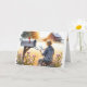 Une vieille femme dans un casquette en paille est assise sur un tabouret à côté des fleurs sauvages, lisant une lettre à côté d'une boîte aux lettres ouverte. Le texte de la lettre sur la couverture avant peut être modifié. Le message intérieur est modifiable.