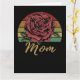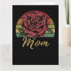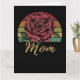Envoyez cette carte de voeux de style vintage affolée avec votre propre message personnalisé à l'avant et à l'arrière. Il présente une rose rouge classique devant un arrière - plan de couché de soleil rétro et le mot "Maman" en or.