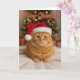This festive card features a ginger cat in a Santa hat, sitting peacefully in front of a glowing Christmas tree.