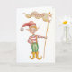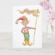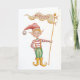 Send merry greetings with this festive holiday elf! Card features a hand drawn original illustration of a cheery elf in full red and green costume, waving a flag that reads "merry." Blank on the inside.