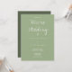 Un faire-part de mariage pour un micro mariage. Cette invitation est faite en sauge et blanc avec juste assez d'informations pour gagner la journée. Ajoutez simplement vos informations, ajoutez cet invitation à votre panier et profitez de votre petit mariage intime. Micro Mariage Sage Typographie minimaliste Faire-part de mariage de jour férié | ©Melissa Patton - Designer