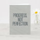 A sleek and highly minimalist card featuring the powerful and popular quote, "PROGRESS, NOT PERFECTION." The text is presented in clean, modern, dark gray sans-serif font, centered on a light heather-grey background with subtle, delicate diagonal lines. This highly versatile design is perfect for professional encouragement, coaching clients, corporate gifts, or anyone who appreciates a simple, clean aesthetic. Use this card to remind recipients about the importance of effort, growth mindset, and consistency over impossible standards. The neutral colors make it suitable for all recipients.