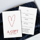 A minimalist fully customizable gift card template with white background and a bold hand-drawn heart outline icon.