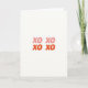 This simple card keeps things simple with a big white background and four “XO” pairs arranged in a neat 2x2 grid at the center. The top two “XO” sets are a soft blush pink, and the bottom two are a warm tangerine orange. Each letter looks rounded and slightly slanted, like casual hand lettering, which makes it feel friendly and close. There are no characters or objects, just the letters and lots of open space that makes the message stand out. The “XO” text sits right in the middle of the front, easy to spot at a glance. It feels meaningful because it says “hugs and kisses” without needing anything else, which works for romance or a sweet friendship 🥰. The pink-to-orange mix adds a gentle-to-warm feeling that matches how affection can grow ❤️.