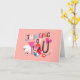 Minnie Mouse tient dans ses bras une boîte en forme de cœur emballée avec une typographie amusante qui dit "Pensant à toi" !