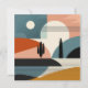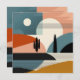 Paysage abstrait d'une scène désertique aux lignes et aux formes dans les tons marron, orange, turquoise, beige, bronzé et noir.