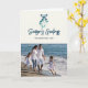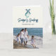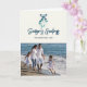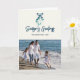Mistletoe attachée avec un ruban bleu dans un style moderne. Envoyez des Bonnes Fêtes à vos amis et à votre famille avec cette jolie carte. Front peut être customisé - les Bonnes Fêtes et le nom de famille et l'année. Ajoutez votre propre photo de famille pour une carte de vacances attrayante. À l'intérieur peut être customisé avec un message et votre nom de famille.