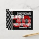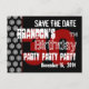 Voici une carte postale tendance de sauvegarde de date en noir et blanc avec des accents de rouge pour une fête d'anniversaire de 30 ans. Amusant ! Tout le texte est personnalisable.