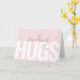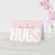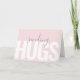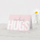 Une simple carte moderne remplie de gentillesse et d'affection, ce design comporte un texte "envoi de câlins" dans une combinaison de caractères gras et manuscrits sur le devant de la carte. Le fond pastel rose blush est un choix de couleur populaire et ajoute à l'aspect contemporain de la carte. Le texte à l'intérieur est une expression réfléchie qui peut être commandée telle quelle ou personnalisée avec votre propre texte intérieur souhaité. Cette carte est non seulement un excellent choix pour les occasions spéciales comme la Saint-Valentin, mais c'est aussi un choix parfait pour envoyer une carte attentionnée à quelqu'un qui est malade, a besoin d'un coup de pouce, ou peut-être un membre de la famille ou un ami qui vit seul ou dans une maison de retraite. Tant de possibilités pour égayer la journée de quelqu'un avec cette simple carte.