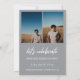 Écriture blanche moderne superposition "Graduate", faire-part d'obtention de diplôme de la haute classe de photo et invitation en gris. Lignes modèles pour le nom du diplômé, la classe de l'année et l'école. Le dos de la carte comporte 2 espaces photo supplémentaires avec des lignes de texte pour les détails de votre fête d'ouverture/remise des diplômes.