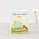 This spring-themed birthday card features a daffodil-inspired birthday cake, the flower of March, with a robin perched on a wooden cake stand, creating a cheerful and meaningful design for a mom's birthday.