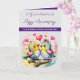 À ma merveilleuse femme / Joyeux anniversaire Couleurs violet et gris / avec de mignons inséparables avec coeur d'amour rouge. Personnalisez avec un message.