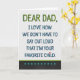 Personnalisé "Cher papa, j'adore la façon dont nous n'avons pas à dire haut et fort que je suis votre enfant préféré." Carte de vœux.