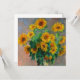 Carte représentant la peinture à l’huile de Claude Monet Bouquet of Sunflowers (1881). Beaux tournesols dans un vase bleu au-dessus d'une table rouge. Un grand cadeau pour les amateurs d'impressionnisme et d'art français.