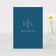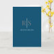 Carte Monogramme gris tendance et nom blanc, bleu océan