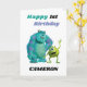Customisez cette carte d'anniversaire Monsters Inc. avec Mike et Sulley! Personnalisez en ajoutant votre message personnalisé et le nom de votre enfant !