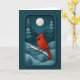 A vivid red cardinal perches quietly on a snow-covered branch beneath a glowing full moon in this layered papercut-style illustration. Surrounded by pine trees, snowy hills, and a star-filled sky, the scene evokes quiet wonder and emotional stillness. The cardinal’s bold color contrasts beautifully with the cool tones of the winter forest, making it a striking focal point in this serene composition.