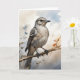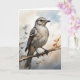 Moqueur polyglotte perché sur une branche d'arbre entouré de jolies feuilles pâles. Carte de vœux vierge pour anniversaire, anniversaire de mariage, nouveau bébé, merci, condoléances, etc.
