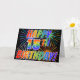 Le devant de cette carte de voeux vibrante, excitante et attrayante présente un motif coloré inspiré par des feux d'artifice festifs, ainsi que le message "HAPPY 15TH BANTHDAY !" avec un arc-en-ciel multicolore comme un motif dégradé, sur un arrière - plan de couleur noire. L'intérieur comporte un message d'accueil customisé, ou peut-être pourrait-il être effacé et laissé vide s'il est désiré écrire un message à la place à la main. Une telle carte de voeux peut être amusante à envoyer à quelqu'un célébrant son quinzième anniversaire. [~Z0000355]