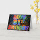 L'avant de cette carte de voeux passionnante, amusante et vibrante présente un motif coloré inspiré par des feux d'artifice festifs, ainsi que le message "HAPPY 31ST BANTHDAY !" avec un motif dégradé multicolore inspiré par un arc-en-ciel, sur un arrière - plan de couleur noire. L'intérieur comporte un message de salutation personnalisable, ou peut-être pourrait-il être effacé et laissé vide s'il est désiré écrire un message à la place à la main. Une carte de voeux comme celle-ci pourrait être une façon heureuse et amusante de souligner le 31e anniversaire de quelqu’un. [~Z0000355]