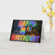 Le devant de cette carte de voeux amusante, vibrante et passionnante présente un motif coloré inspiré par des feux d'artifice, ainsi que le message "HAPPY 8TH BIRTHDAY !" avec un motif multicolore inspiré par des arc-en-ciel, sur un arrière - plan de couleur noire. L'intérieur comporte un message d'accueil personnalisé, ou pourrait être effacé et laissé vide s'il est désiré écrire un message à la place à la main. Une carte de voeux comme celle-ci pourrait être une façon joyeuse et amusante de célébrer le 8e anniversaire de quelqu’un. [~Z0000355]