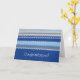 Félicitations, c'est un script blanc devant. Photo de gros plan de crochet motif en bandes de blanc et des nuances de bleu. Le bleu foncé domine. Dans le texte "Des voeux chaleureux pour votre nouveau paquet de joie"