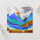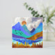 Ce magnifique design dépeint un paysage de montagne coloré avec un ciel nuageux et des collines ondulantes aux textures et couleurs audacieuses comme le bleu, le turquoise, le cyan, l'or et l'orange.